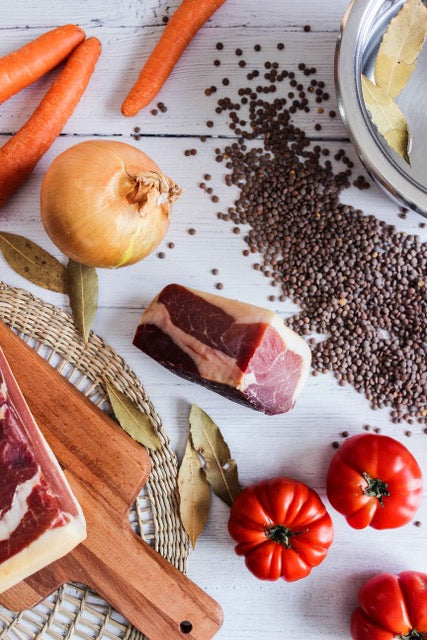 -8 Miniblock de jamón curado reducido un 25% en sal de 400g-500g cada uno, por lo que llevarías casi 4 kg aproximadamente de jamón limpio y pulido.